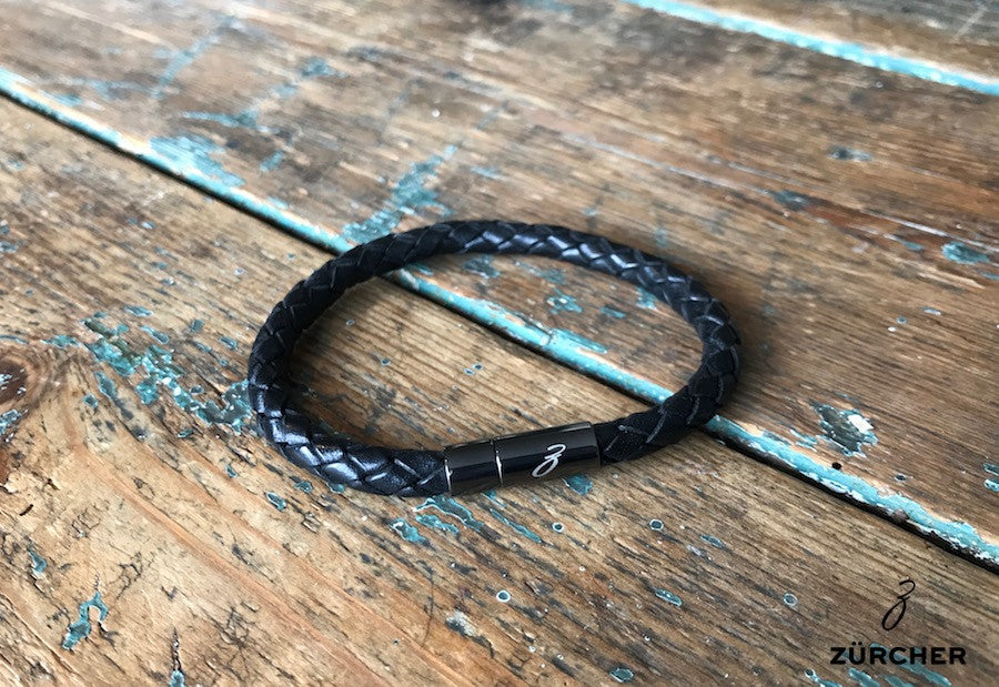 Our leather men's bracelets are made from genuine cowhide leather. Available in a range of colours including popular black leather and brown braid.